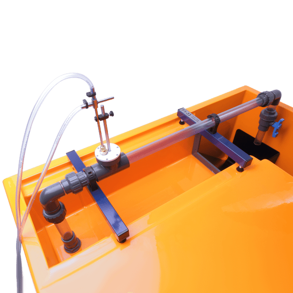 The pitot tube is connected to a pressurised water manometer to measure the differential head across the pitot static tube.
