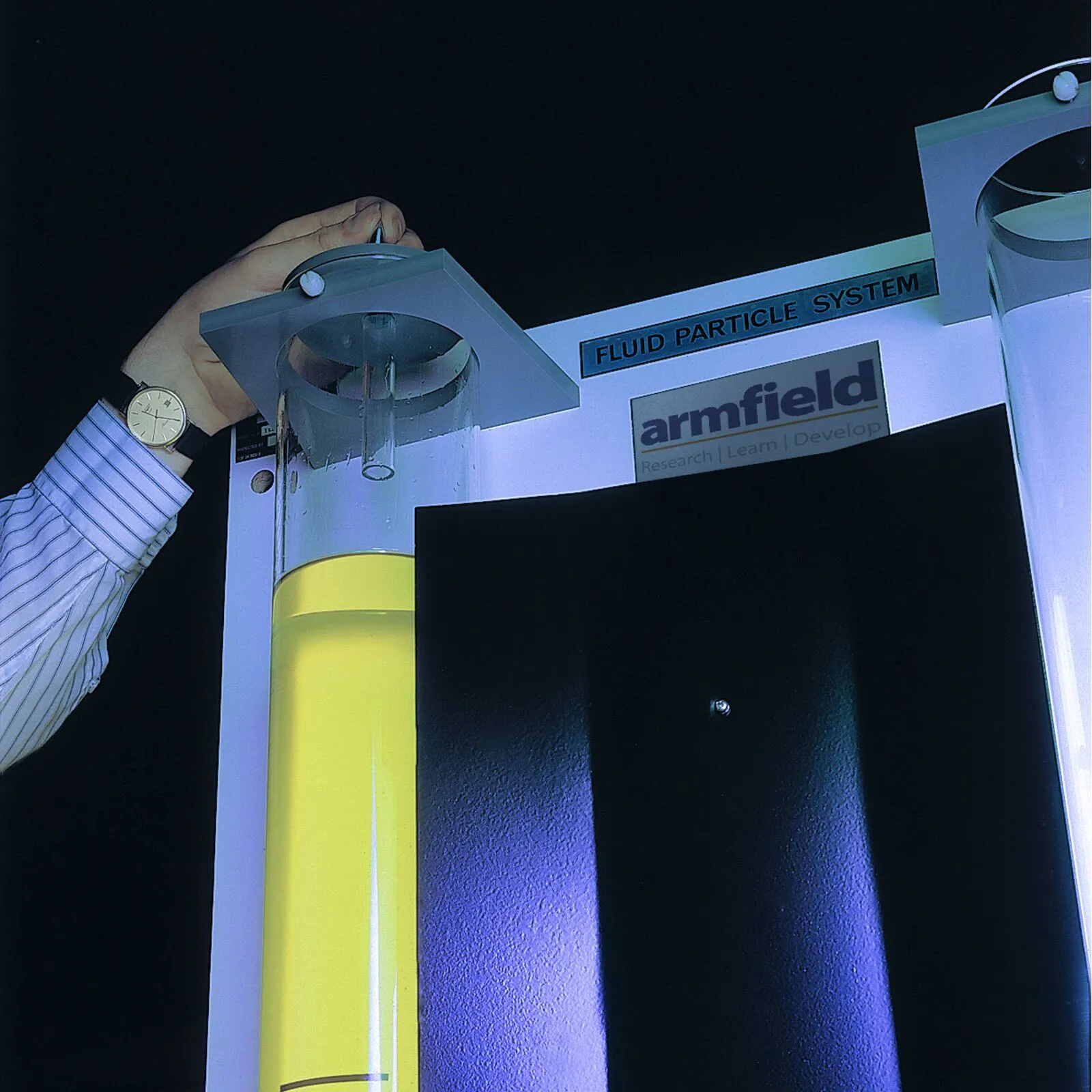 The apparatus has been designed to introduce students to the fundamental characteristics of the behaviour of particle/fluid systems, in particular the relationship between the drag coefficients of falling particles and their Reynolds’ number value.