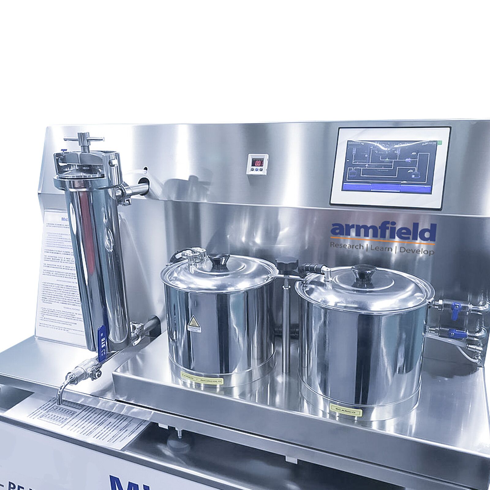 The Armfield FT110DP Benchtop Rapid Extractor is used to extract the active constituents from small (<1 litre) samples of materials. This single piston pressure system gives rapid results from small volumes while giving flexibility to the operator with the processing parameters. The three phases of operation are pressurisation, relaxation and dynamic percolation.