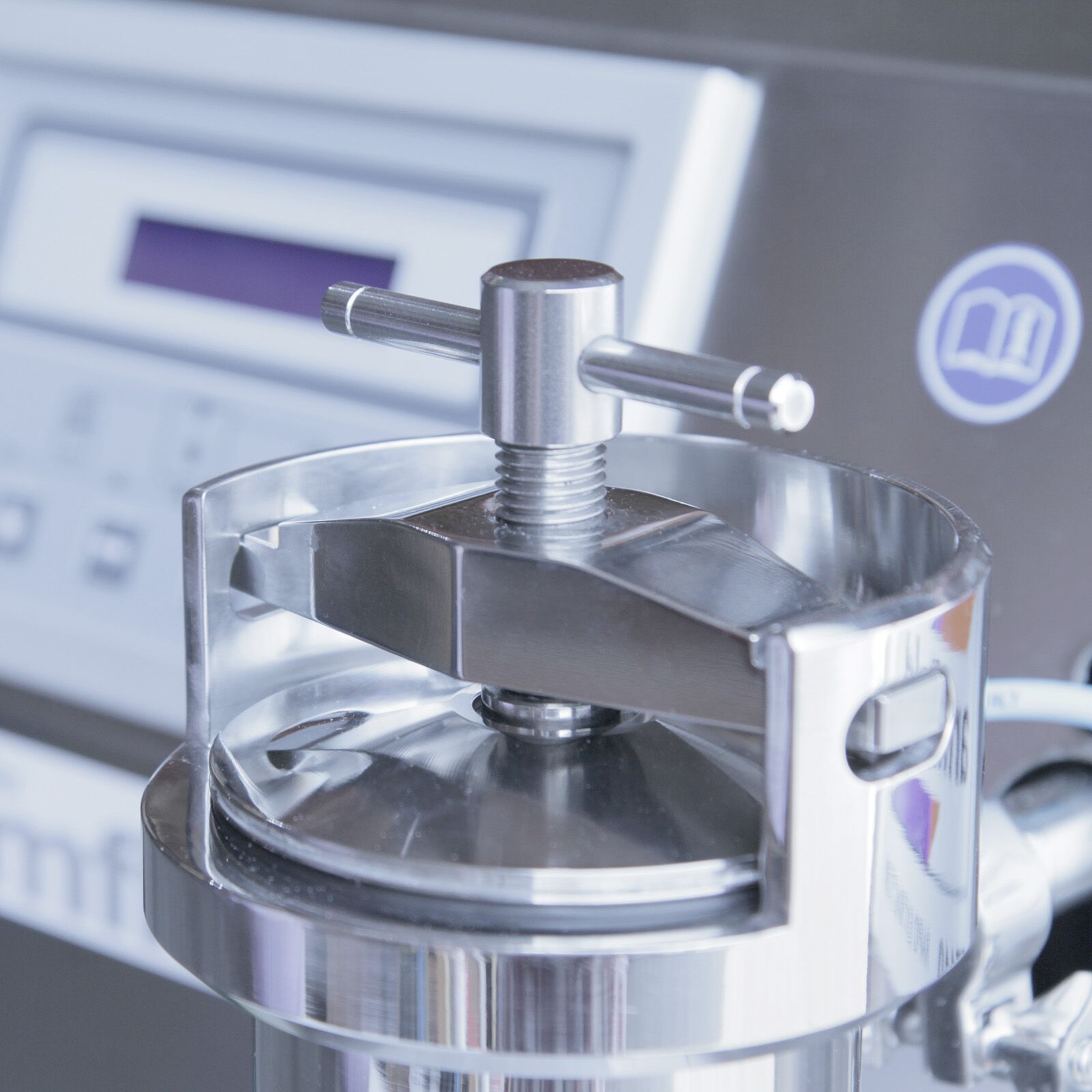 This single piston pressure system gives rapid results from small volumes while giving flexibility to the operator with the processing parameters.