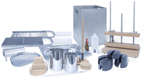 Using the accessories, it is possible to carry out the following operations: curd cutting, cheddaring, pH determination (chemical) and pressing.