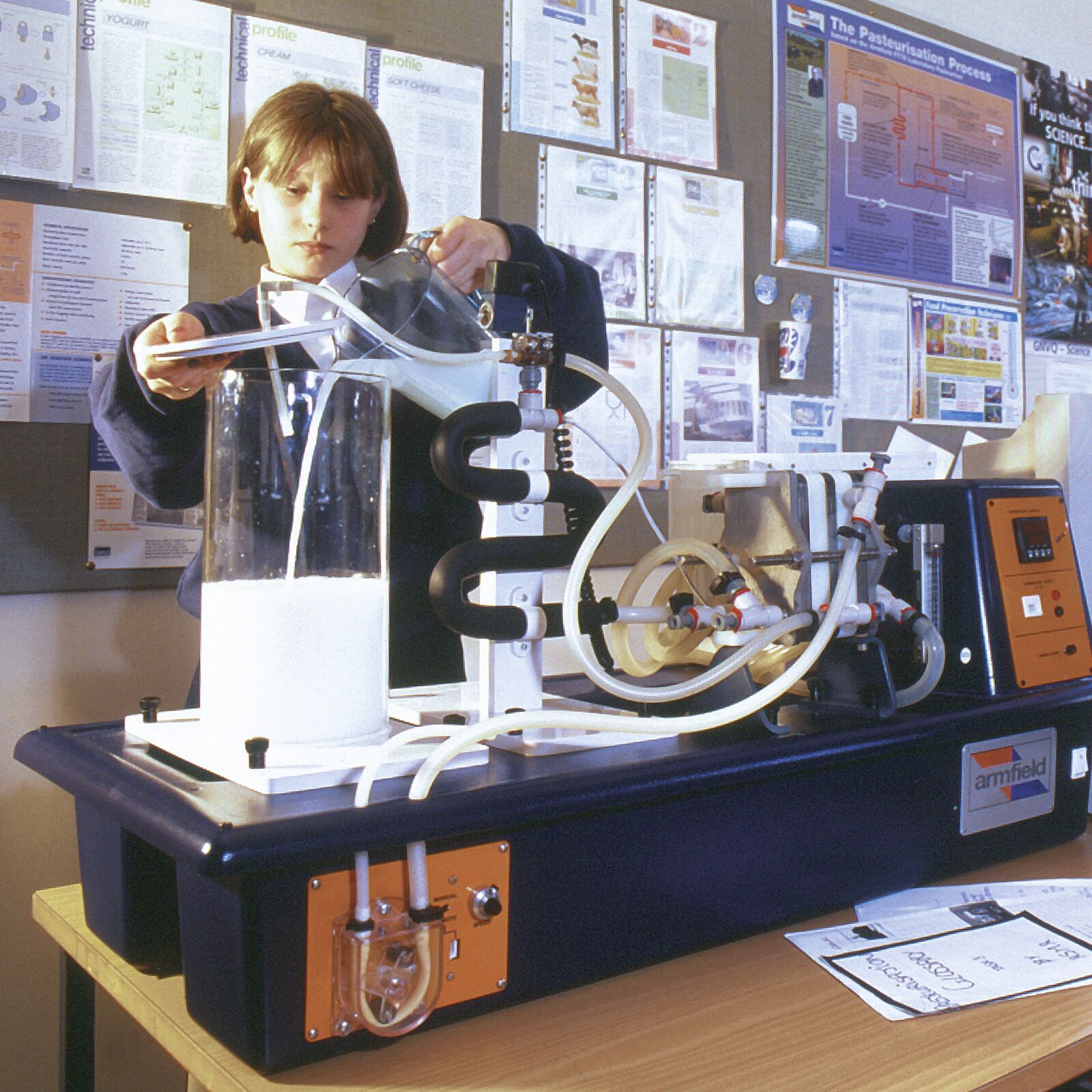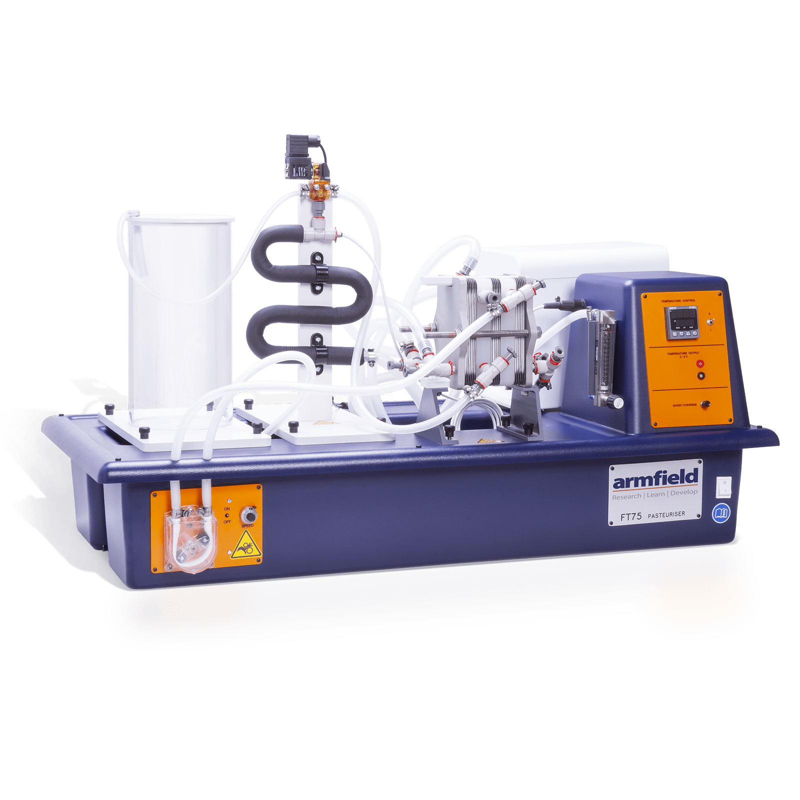 The FT75 Laboratory Pasteuriser accurately reproduces in miniature the industrial High Temperature Short Time process (HTST). Nominal throughput is only 10 litres/ hour. Although primarily designed for use with milk, other food liquids can be pasteurised providing that their solids content is not too high.