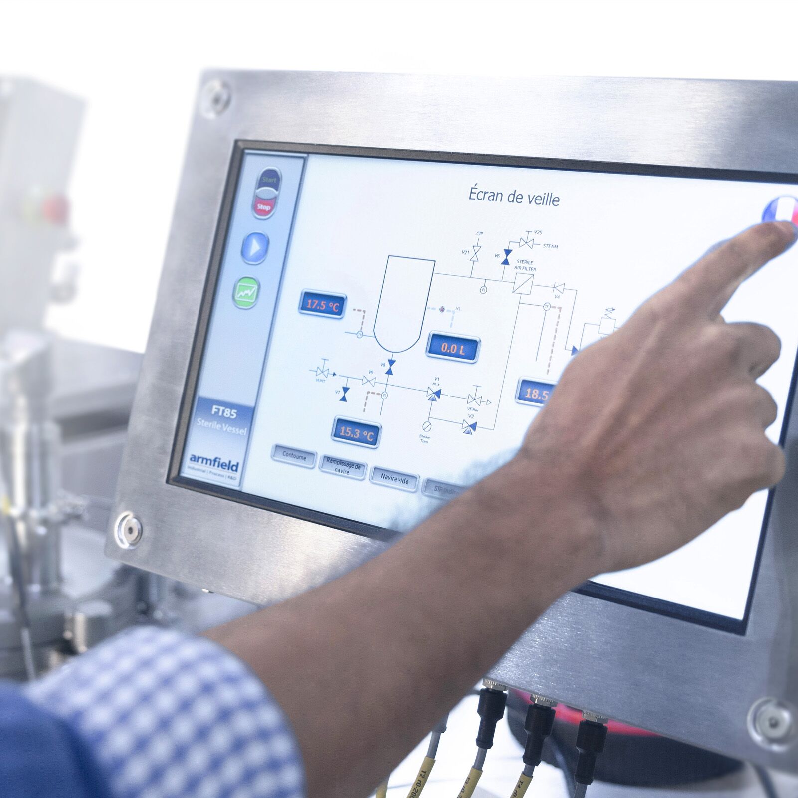 The armSOFT™ software displays the equipment flow diagram with readings displayed for all sensors. Time/temperature sterilisation protocols are set or recalled from memory.