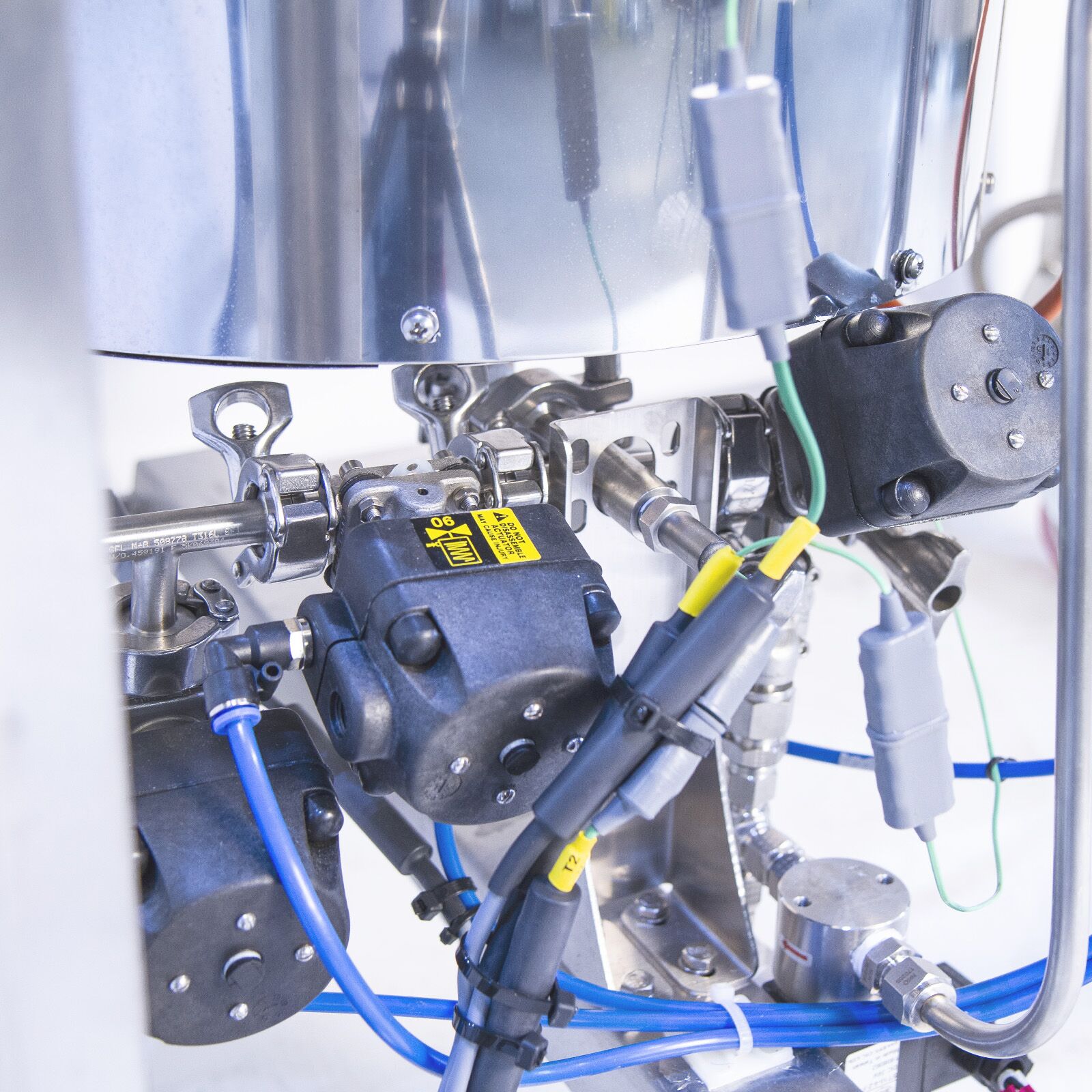 Once processing is complete flow bypasses the vessel and is then stopped. Sterile gas can be pumped into the vessel to provide product mixing. The vessel is then placed in Vessel Empty mode and positive head pressure on the vessel (sterile gas) is used to feed the product to the filler. The FT85 is cleaned in place using a CIP spray ball with the UHT system pumping the cleaning fluid through the system.