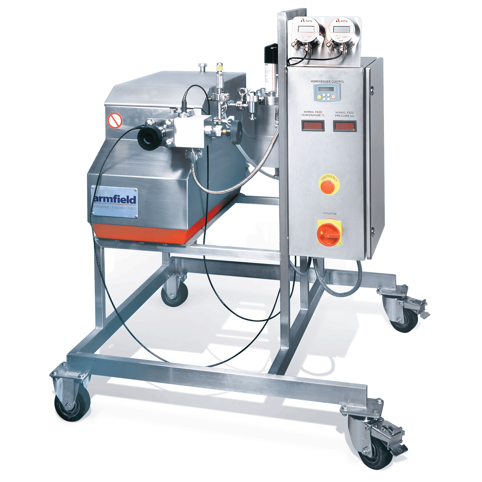 The FT90 and FT91 are complete in-line homogenisation subsystems for use with Armfield miniature-scale food processing equipment. The FT90 is based on an APV 1000 homogeniser and the FT91 is based on a Niro Twin Panda. Both homogenisers have been specifically optimised for laboratory and pilot scale applications. The units include controls, comprehensive instrumentation, valves, pipework, pulsation dampers, datalogging and all facilities required for operation and process integration with other Armfield equipment. Also available as stand-alone systems.