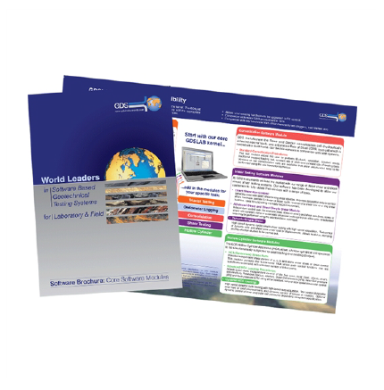 The GDS software brochure gives a comprehensive breakdown of all the software modules available to run on the GDSLAB Software. The brochure splits the available modules by test type and gives a brief description of what each module can be used for.