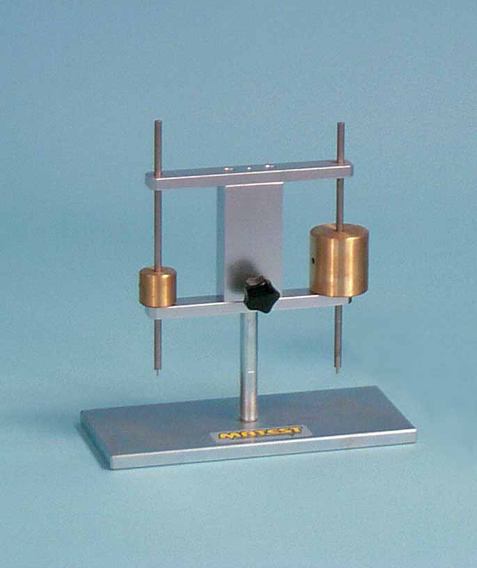 Used to determine the setting time of cement. The vertical support shaft has a device to maintain the horizontal arms in alignment.