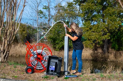 The Grundfos MP 1 (Redi-Flo 2) pump used in the Grundfos MP 1 (Redi-Flo 2) submersible pump sets is specially designed for purging and sampling monitoring wells with a diameter of at least 50 mm and a depth to 90 meters. The pump motor is controlled by a special adjustable frequency converter. Since the frequency is continuously adjustable, the capacity of the Grundfos MP 1 (Redi-Flo 2) pump can be controlled from 0 to 2 m3/hour. This creates a constant flow of anaerobic water.