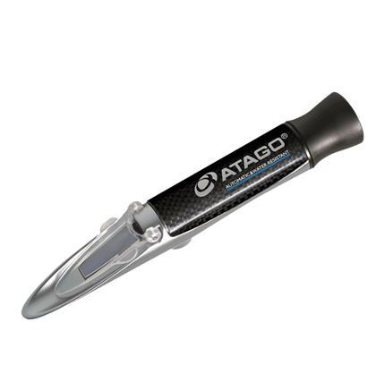 This new type of Hand-held Refractometer is the first to be equipped with Automatic Temperature Compensation and Water Resistant (IP65) at the same time. While featuring functions such as Easy-to-Read, Easy-to-Hold, Smooth sampling, Easy disposal of sample from the edge, the improvement of hygiene aspect by employing the new type of grip, and well balanced structure, emphasis is also placed on its design, well exemplified by the streamlined body and the strong grip with rich texture.
