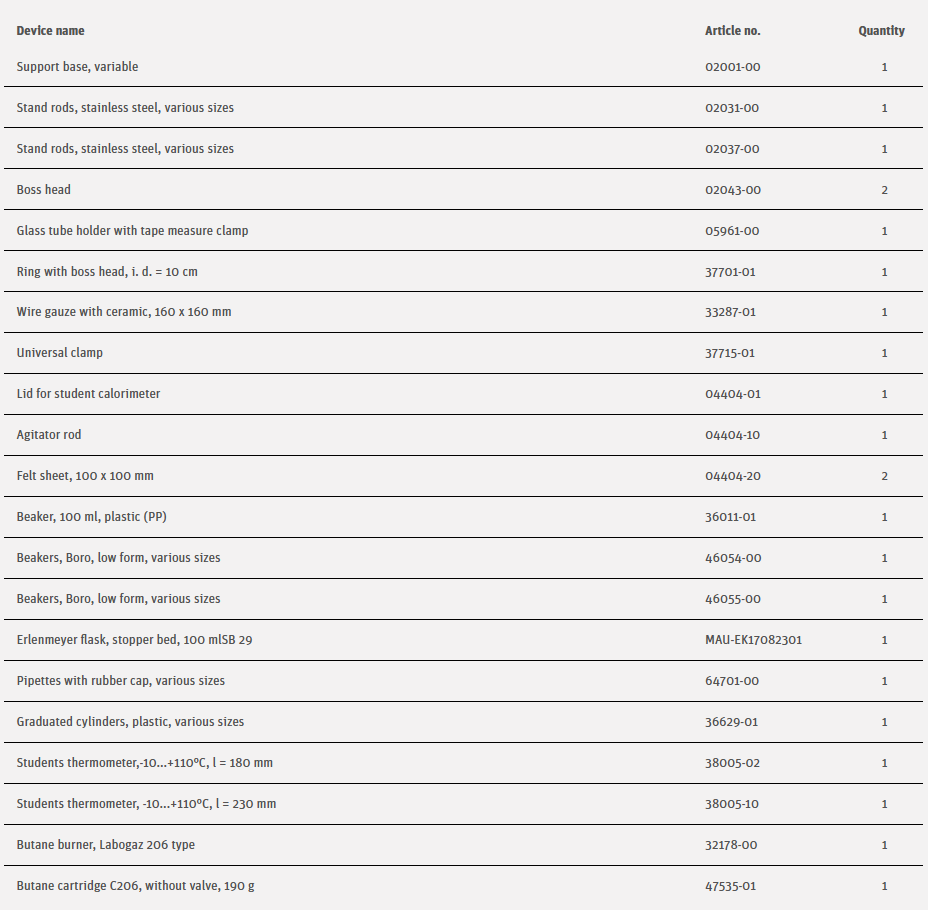 The same quantities of hot and cold water are mixed. The hot water is always poured into a calorimeter containing cold water (room temperature). The measurements are repeated three times and the calorimeter’s heat capacity is then calculated as the average value of the three measurements.
