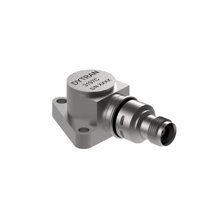 The Dytran model 3197C is a high temperature charge mode accelerometer, designed to reliably operate in temperatures up to +500°F (+260°C). Featuring a sensitivity of 2.4 to 4.5 pC/g, and a rugged stainless steel construction, the model 3197C is hermetically sealed for reliable operation in high humidity and dirty environments and case isolated, to avoid EMI/ground loop interference (exact sensitivity is provided on the calibration certificate supplied with each sensor). Units are offered with an industry standard tri–bolt mount and radial TNC connector.