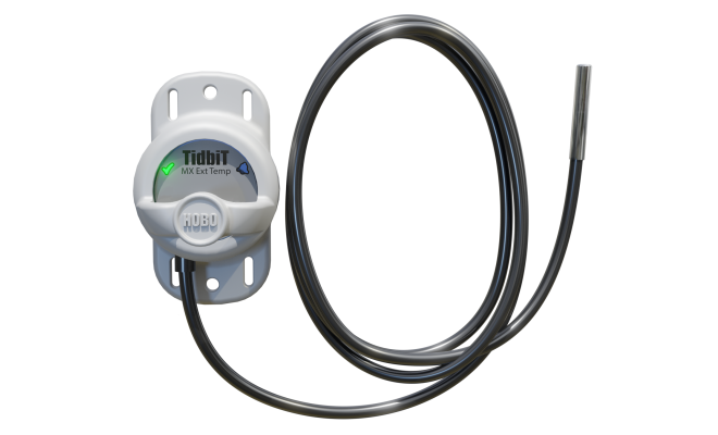 The HOBO TidbiT MX2205 is ideal for monitoring shallow waters, like streams and wetlands, or for monitoring soil in fields that are prone to flooding. Equipped with both an internal sensor to monitor ambient temperature and an external sensor on a 2m cable to accurately monitor fast-changing temperatures, the HOBO TidbiT Mx2205 is a low-cost, easy-to-use, waterproof logger that leverages the power of Bluetooth to deliver high-accuracy data straight to your mobile device or Windows laptop running Onset’s free HOBOconnect app. This rugged logger withstands harsh environments, and can be deployed just above water or soil for quicker, more convenient data downloads that don’t require pulling up the logger.