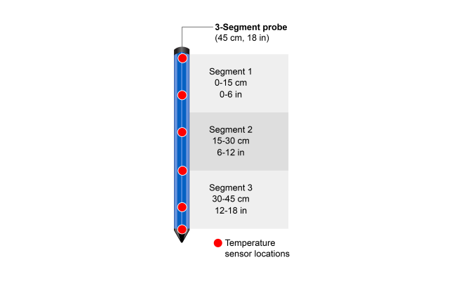 An award-winning wireless sensor that works with the HOBOnet system to measure soil moisture and soil temperature at multiple depths with a single probe. With fast and easy installation, this durable sensor and 3-segment probe measures to a depth of 45 cm (18 in).