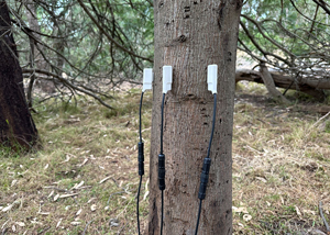 Sap flow occurs in the xylem of trees. Xylem is the wood inside trees that is a series of interconnected pipes, running from the roots to the leaves, where sap flows. Xylem is made up of heartwood and sapwood. The heartwood is the middle of the tree, usually darker in colour, and is a mechanical and storage wood. Sapwood is towards the outside of the tree and is usually cream in colour. Sap flow occurs in the sapwood of trees and this is where the Implexx Sap Flow Sensor sensor measures.