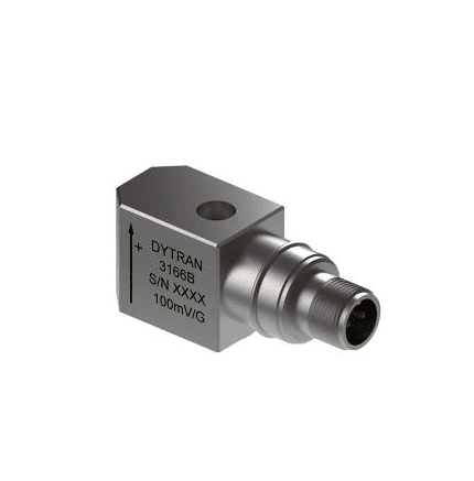 Available with sensitivities ranging from 10–500 mV/g, design of the series 3166 incorporates a ceramic shear sensing element packaged in a highly rugged stainless steel housing. Units are hermetically sealed for reliable operation in high humidity and dirty environments and are internally case isolated to avoid EMI/ground loop interference.