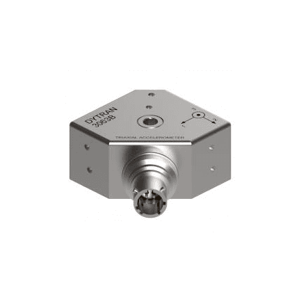 The Dytran model 3063B is a highly rugged, triaxial IEPE accelerometer with built–in Faraday shield for electrostatic noise immunity, a sensitivity of 100 mV/g, built–in long discharge time constant and excellent low frequency response down to 0.5 Hz.