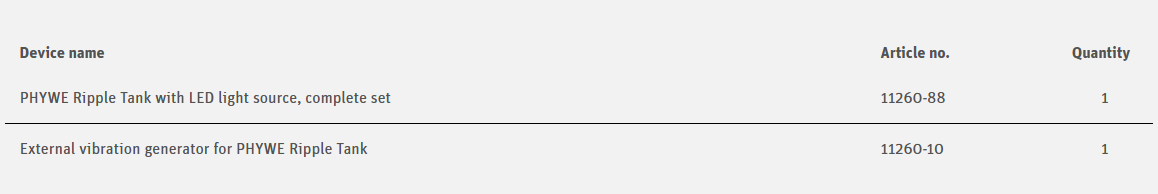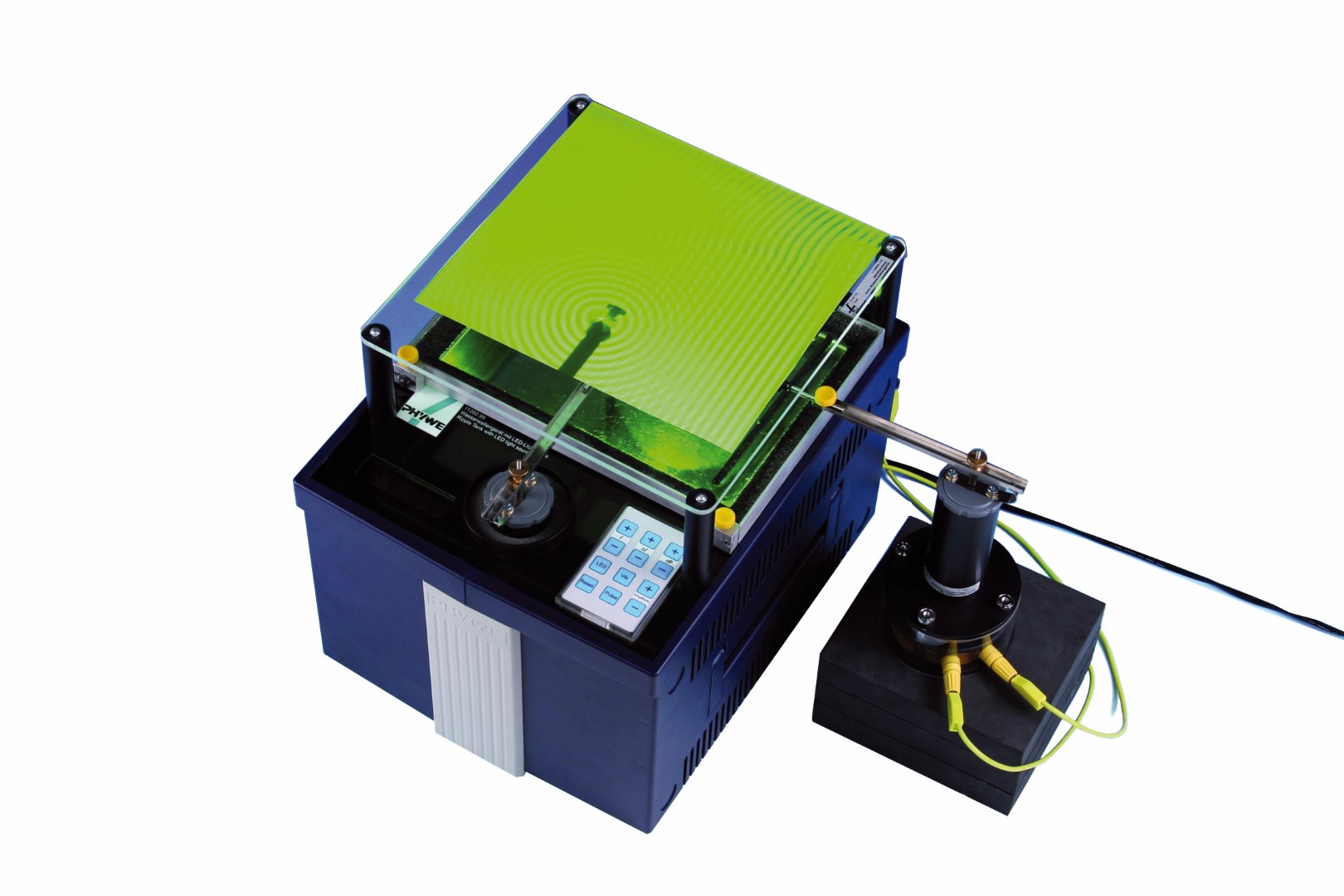 A set of circular water waves is generated simultaneously and the resulting interference is observed. By increasing the number of interfering circular waves, Huygens’ Principle can be verified. With the aid of plane water waves, diffraction phenomena of waves at different obstacles (slit, edge, double-slit etc.) are investigated. In a further experiment, the principle of “phased array antennas” can be demonstrated. To do so, two circular waves are generated to interfere and the resulting interference pattern on varying the phase of one of the circular waves with respect to the other one is observed.