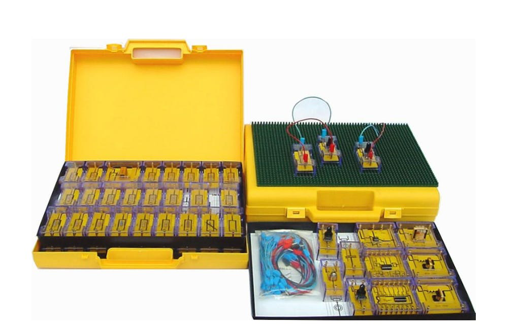 The kit includes a set of components allowing a full course on general electronics to be developed.