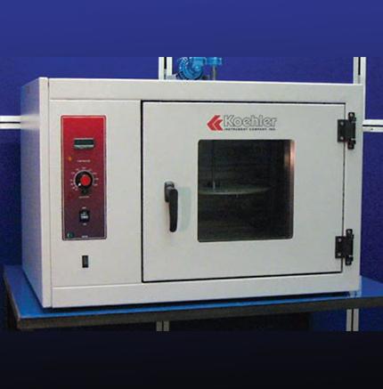 Dual purpose oven for loss of heat test and thin film test for bitumen and asphaltic materials. Interior chamber of stainless steel and stored powder painter steel exterior. Double glazed window in door for viewing test chamber. Side mounted controls comprise microprocessor digital control, independent overheat thermostat, main switch and indicator lamps. Two rotating platforms supplied to perform both the tests.