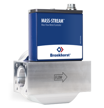 Bronkhorst® model D-6471/DR3 Mass Flow Controllers (MFCs) are suited for precise measurement of flow ranges between 6…300 ln/min and 60…3000 ln/min at operating pressures between 30 mbar and 5 bar(g). The MFC consists of a proven inline thermal (CTA) mass flow sensor, an advanced, innovative control valve and a microprocessor based pc-board with signal and fieldbus conversion. As a function of a setpoint value, the flow controller swiftly adjusts the desired flow rate. The instument is IP65 complient and can optionally be equipped with a modern, multi-functional and multi-colour display, with operator buttons on the instrument.