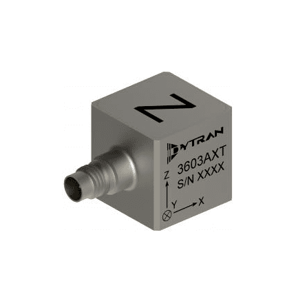 The Dytran series 3603 is a case isolated, mechanically and electrically filtered triaxial IEPE accelerometer with a range of sensitivity from1–10 mV/g sensitivity. This miniature sensor is packaged in a light weight titanium housing and weighs 30 grams.