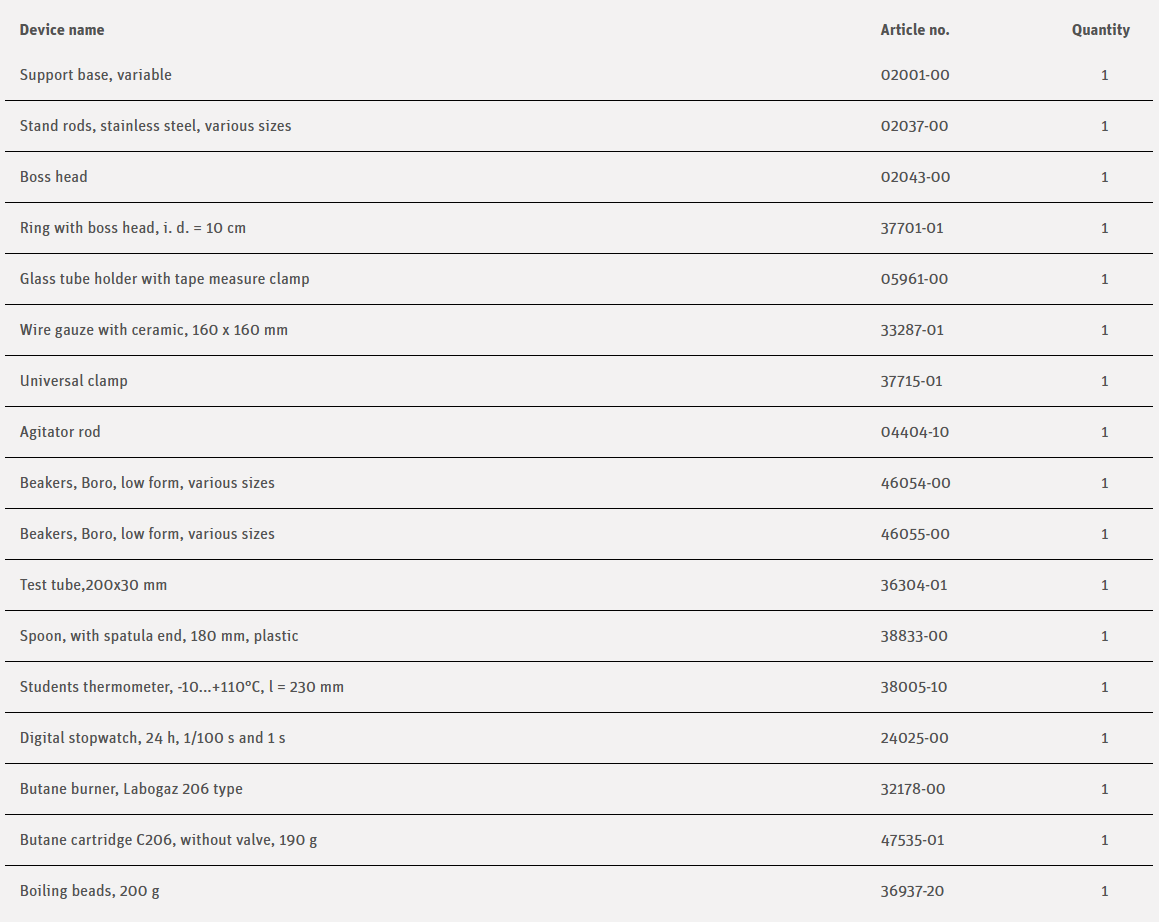 The course of sodium thiosulfate’s temperature during melting and subsequent freezing is measured. Moreover, it can be clearly seen that heat is necessary for the melting process: the temperature does not rise until all the salt has melted. During freezing this energy is released. This can be seen especially well when the molten salt first undercools and then immediately freezes when a salt crystal is dropped into it. The temperature rises immediately to the melting point.