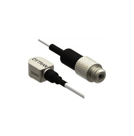 Available with a sensitivity between 0.2 to 14 mV/g, the series 3224 features a ceramic shear sensing element in a lightweight laser welded titanium housing, with an integral cable terminating to a 10–32 jack (exact sensitivity is provided on the calibration certificate supplied with each sensor). The cable is designed to mate with several Dytran extension cables.