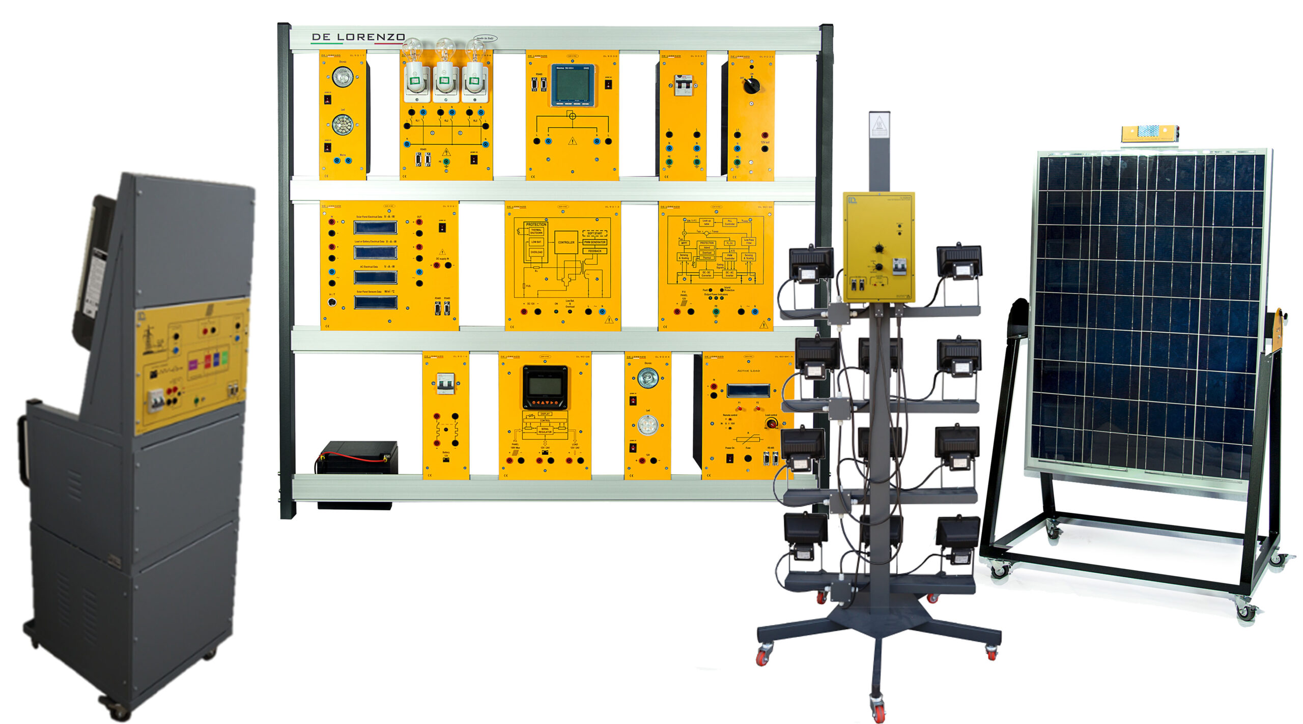 Modular trainer for the theoretical and practical study of the electric energy generation from photovoltaic panels.