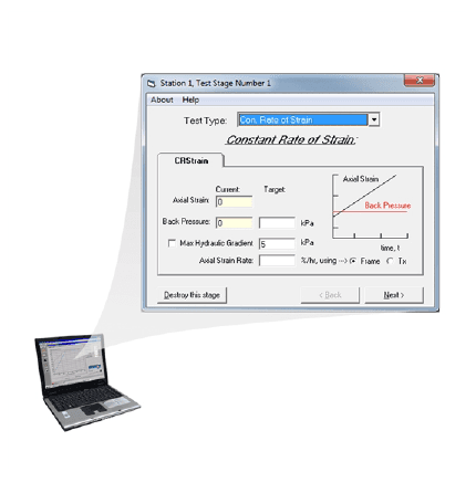 This test module allows the user to perform; B-check, saturation, constant stress, traditional stepped loading test, constant rate of strain and constant rate of loading tests.