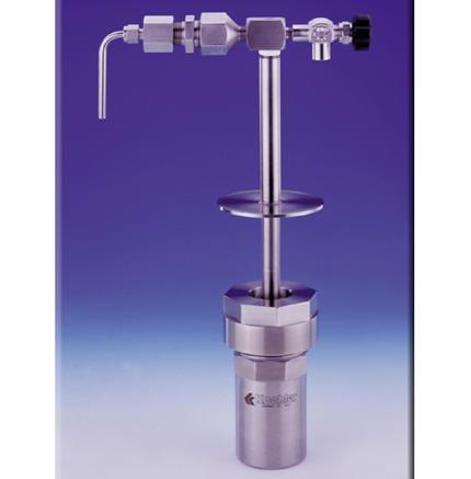 Precision machined stainless steel pressure vessel includes threaded body; lid; stem with filler rod and mounting flange; needle valve for purging, pressurizing and exhausting pressure vessel with oxygen; and burst disk assembly. Pressure vessel interior and inside of stem have a high polish to facilitate cleaning and prevent corrosion. Stainless steel burst disk ruptures at 223psi (1537kPa) to prevent unsafe pressure build-up inside pressure vessel. Octagonal sections on the pressure vessel and lid permit tight closure with wrench. Includes buna-N gaskets. Can also be used as a pressure vessel in ASTM D5304 “Standard Test Method for Assessing Distillate Fuel Storage Stability by Oxygen Overpressure”.