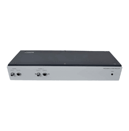 The GDS pneumatic controller is an economical source of computer controlled regulated air pressure control. The controller regulates an external pressure source such as a compressor or compressed air cylinder to provide a controlled output pressure. The control of the valves is via the Serial bus (RS232) from the PC and software.