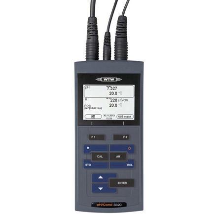 The pH/Cond 3320 as well as the Multi 3320 have a robust and waterproof housing (IP67) and have a memory with a data logging functionality between 1 second and 60 minutes. All entries are GLP compliant with time, date and selectable ID number. The modern waterproof USB interface supports fast and easy data transfer.