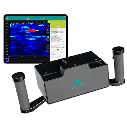 When you need to see deeper or you are in search of information that GPR doesn’t provide, you will want to use Proceq’s Pundit PD-8050. It is an ultrasonic solution that provides real-time imaging of defects in the concrete, voids, delamination, honeycombing, hit prevention, thickness measurement, pulse velocity and more. It also performs on concrete with fiber, where a GPR may have issues. The unit is rated to see up to 6ft depending on the type of concrete you are scanning. Continuous software updates ensure you have the latest Imaging and AI tools. Contact your local Hoskin representative today to chat more about this technology.