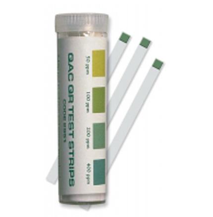 Chemically treated paper strips change to indicate sanitizer level. Strips and color chart are packaged in a waterproof plastic vial. 2951 is specifically formulated to read all types of QAC. More Information