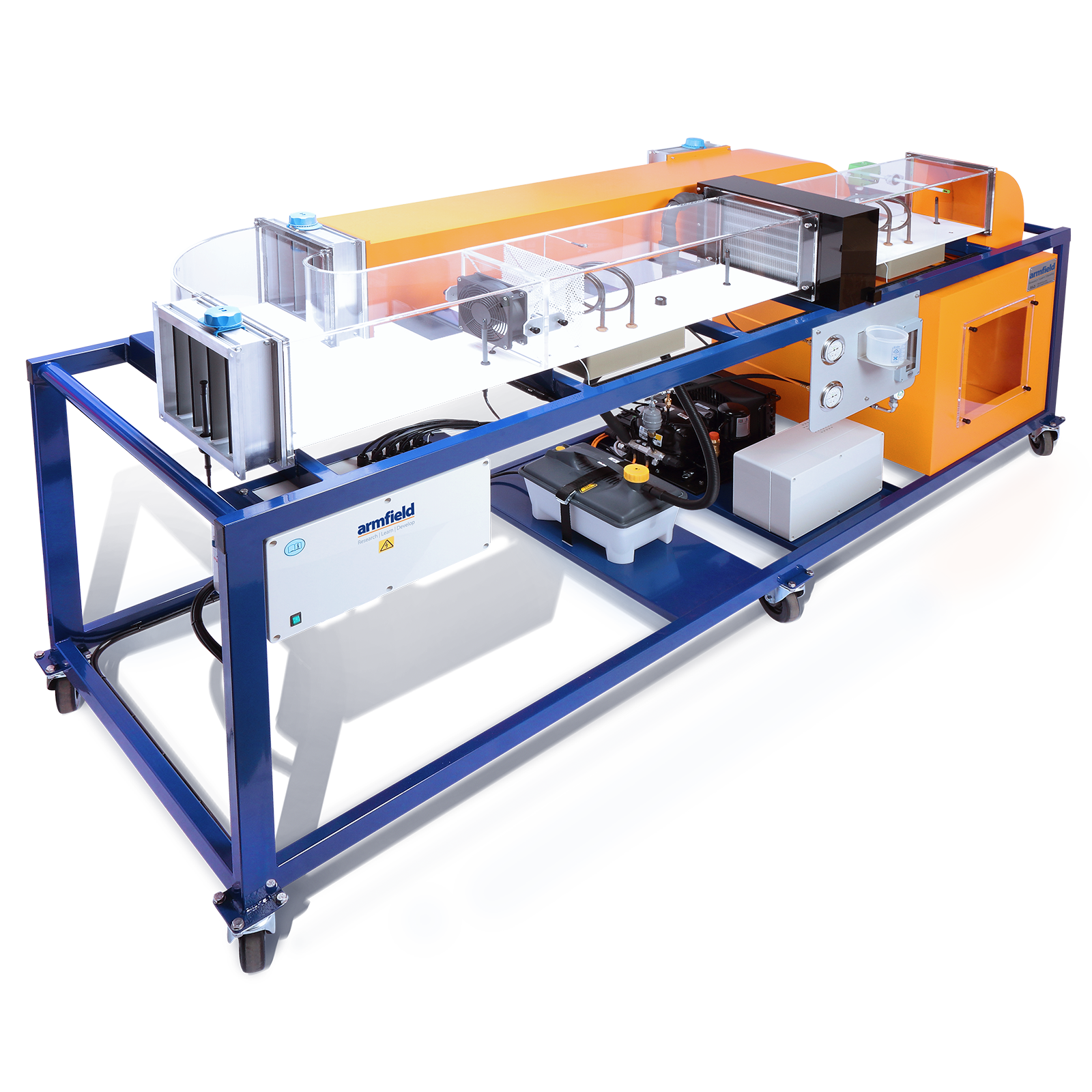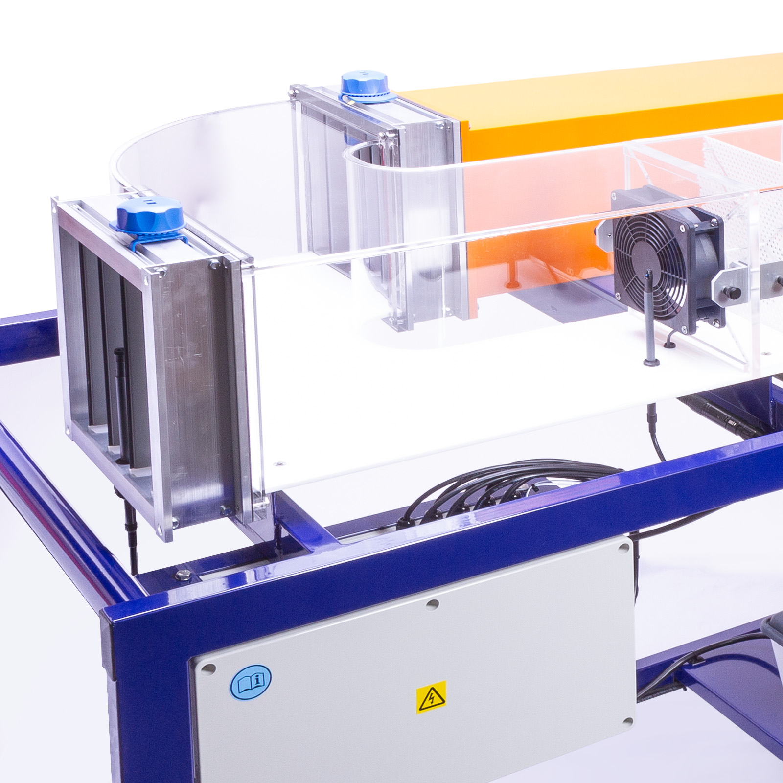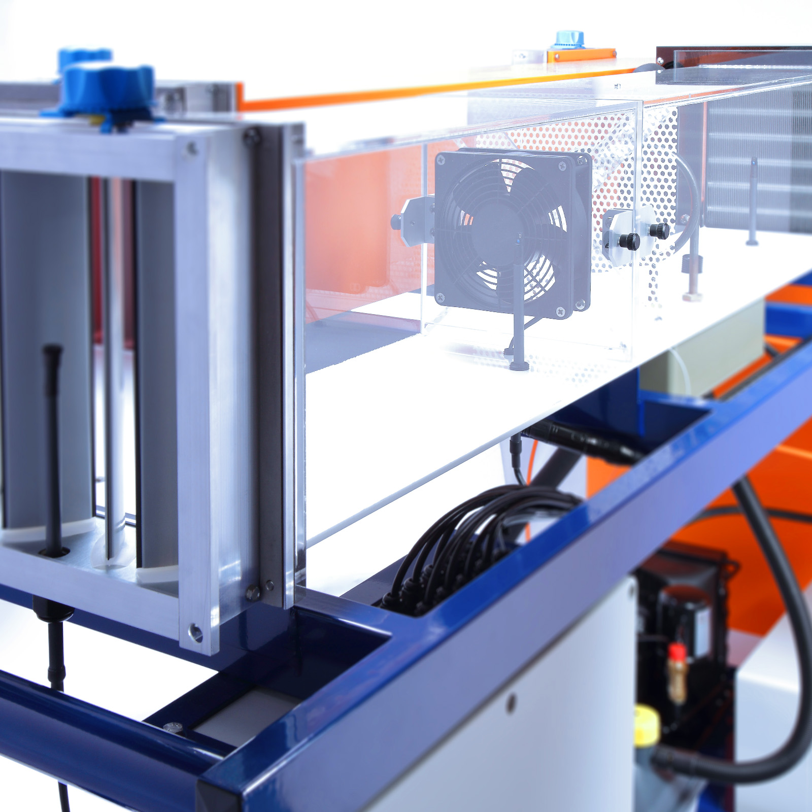 The air out of the duct is passed into a chamber to demonstrate climate control. The exit duct from the chamber is fitted with adjustable vents allowing some of the air to be recirculated back to the duct inlet.