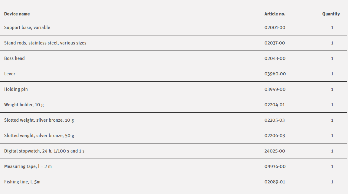 Additionally, they should measure the oscillation period of a thread pendulum with a length which corresponds to the reversion pendulum’s reduced pendulum length and compare it with the reversion pendulum’s oscillation period.