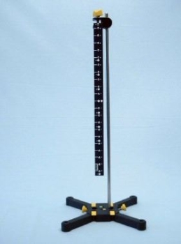 In the “Simple pendulum” experiment (Mechanics 5.2) the students became acquainted with the correlations between pendulum length and oscillation period of a thread pendulum. In the present experiment they should discover the special property of a reversion pendulum: there are two singular suspension points, at which the oscillation period is the same. The distance between them – the reduced pendulum length lR – is larger than the distance “center of gravity – suspension point”; consequently, the pendulum must be reversed in order to hang it on the respective singular points*.