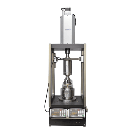 The GDSRSA allows torsional ring shear tests, under drained conditions by the rotational shearing action applied continuously by an electromechanical stepper motor until a constant residual shear stress is achieved. During testing there is no change in the specimen cross-sectional area of the shear plane. The GDS ring shear applies a consolidation stress with the use of a GDS force actuator, this is controlled and recorded with the use of a PC (USB connected) and an external load cell that measures the axial & shear stress directly applied to the specimen.