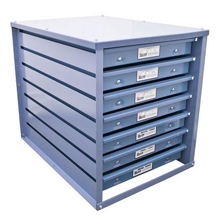 Screen Tray Rack provides organized storage for up to seven screen trays while protecting tray flanges and wire cloth from possible damage. Sturdy, enameled steel sections fit on top of or below most lab bench tops and can be bolted together for stacking. Assembly required.