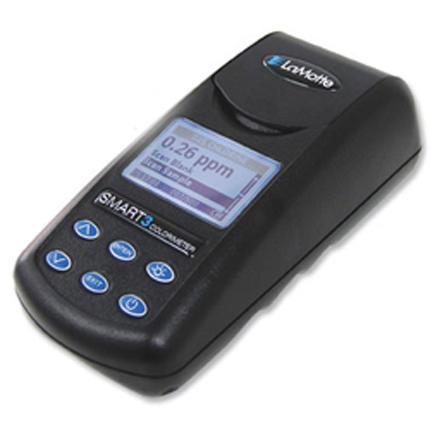 The compact SMART3 Colorimeter is ideal for water analysis in the field or in the lab. Easy to use software allows the analyst to choose a test factor from over 75 preprogrammed calibrations for LaMotte reagent systems. The reacted sample is always scanned at the optimum wavelength which is automatically selected from the multiple LED optical system and the test result is presented on the large, backlit display. The test result is displayed directly in units of concentration, as well as Absorbance and %T, in one of seven languages. The analyst also has the option of entering up to 25 additional calibrations for analysis with custom reagent systems. Test factors can be arranged in any of three sequences that can be modified at any time to meet changing testing needs. The data logger holds up to 500 time and date stamped data points. A USB connection allows an interface of the colorimeter with a computer for real-time data acquisition and data transfer. The meter logs up to 500 data points.