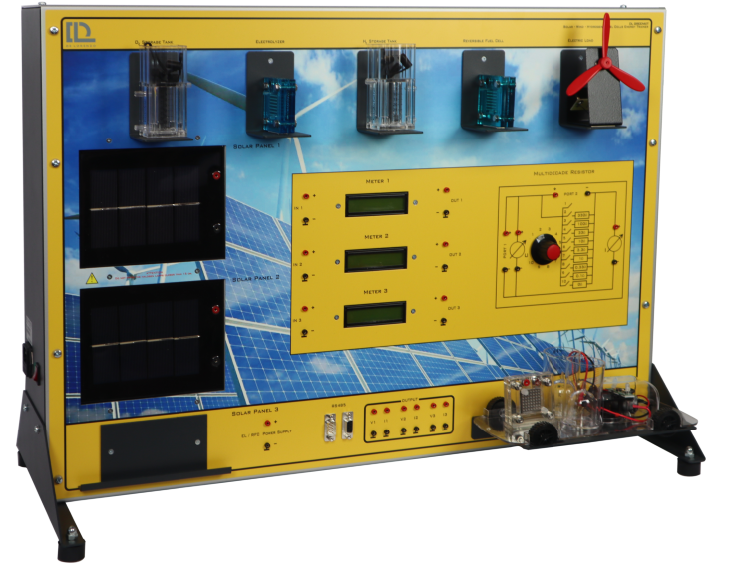 This trainer has been designed for the study of renewable energies sources: solar energy, wind energy and hydrogen fuel cell systems.
