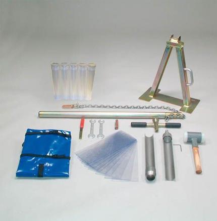 The split tube sampler is an apparatus for rapid undisturbed sampling at the surface. The apparatus is very suitable for research on root systems, fertilizing and soil biology. The set consists of a split tube sampler with a handle with beating head, hammer with nylon heads (shock-absorbing), sample liners, storage containers and a steel lifting jack with lever and chain. The split tube sampler consists of two stainless steel tube halves with a working length of 40 cm. Undisturbed sampling often poses a problem when removing the sample from the sampling tube. With this type of auger, both parts can be easily separated. The sample is located (loose or in the liner) in the detachable tube. The split tube sampler can easily be opened for immediate research of the sample or transport of the sample to the laboratory. Depending on the nature of the research, it is recommended (in order to obtain representative samples) to decontaminate the apparatus after every sampling.