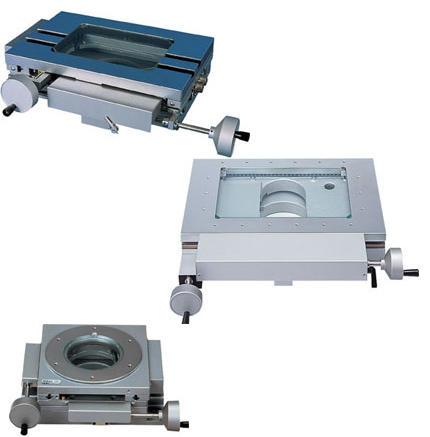 Compatible with most Nikon measuring microscopes and optical comparators, Nikon stages come in multiple sizes to accomodate a diverse range of measuring needs. Each is ruggedly constructed for stable measurements and incorporate precision ground v-ways for maximum smoothness and flatness of travel. Sizes range from 2" x 2" to 10" x 6".