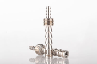 Stainless Steel Soil-Gas Sampling and/or Pressure Port. This Vapor Pin® is designed to last for hundreds of uses and for monitoring in corrosive environments. It has a nominal 1/4-inch barbed fitting at the top and a total length 3 ½”. This version is preferred by regulators for long term monitoring projects. The Vapor Pin® is joined to semi-rigid tubing, e.g. Nylaflow or Teflon via a short piece of Tygon™ R-3063 tubing.
