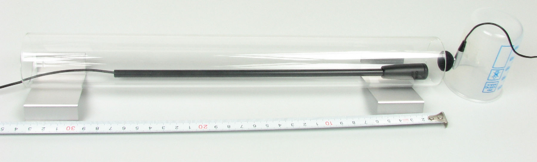 During this experiment, examine how there can be places in a hollow body where no sound can be heard in spite of a continuous generation of sound. A case like this, when the air particles obviously do no longer oscillate in some places, i.e. when they “stand”, is also referred to as a standing wave. Observe the sound propagation without a hollow body. Produce a standing wave in a hollow body (glass tube). Examine the conditions under which standing waves occur.
