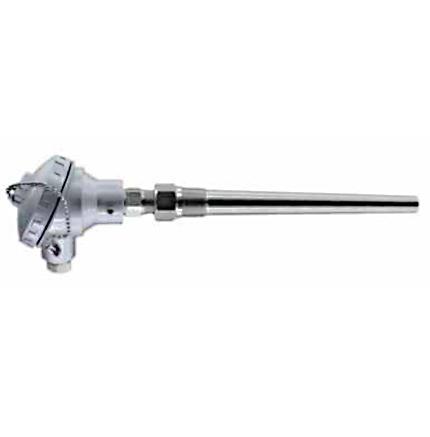 Thermowells allow for the insertion of sensors into pipes, vessels or ducts without interrupting the process. This design consists of a spring loaded version of Model M10 and matching Thermowell. The spring loaded mechanism is necessary for effective heat transfer from the Thermowell to the sensor.