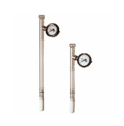 The Model 2710AR-L Tensiometer is a simple, versatile, and inexpensive instrument which provides a direct measurement of soil water tension. The modular design allows easy replacement of the ceramic cup and dial gauge, and addition of extension tubes and the Service Cap. The tensiometer is available in a variety of lengths, ranging from 6 inches (15 cm) to 60 inches (1.5 m). Series 0240 Insertion Tools can be used for coring a hole in the soil to accept these units. The Model 2710K1 Service Kit, available separately, is used to refill and maintain the tensiometer.