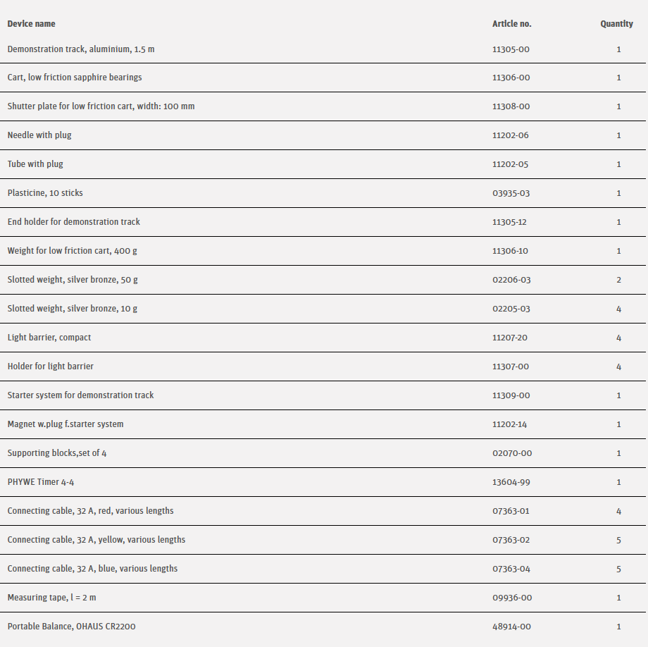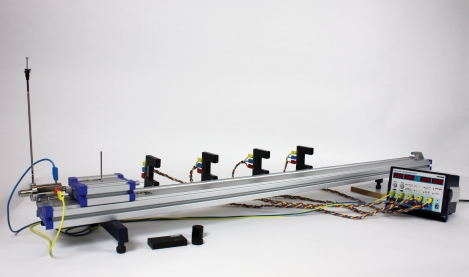 An object on an inclined track is subject to constant acceleration in parallel to the track due to the gravitational forces exerted on the object. If this force component counteracts the initial velocity of the object, the object will slow down before it finally reverses its direction. The aim of this experiment is to confirm the laws of motion for a uniformly decelerated motion by measuring the time that a cart runs on the inclined demonstration track.