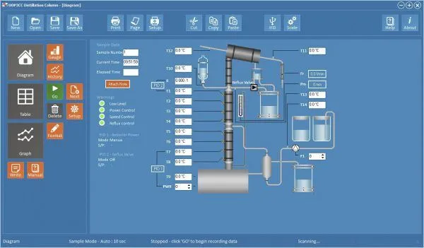 UOP3CC: UOP3CC – Continuous Distillation Column (Computer Controlled) A Continuous or Batch operated version, computer controlled, which enables a full range of demonstrations from the introductory stages of a process engineering course through to the more complex demonstrations of modern control strategies