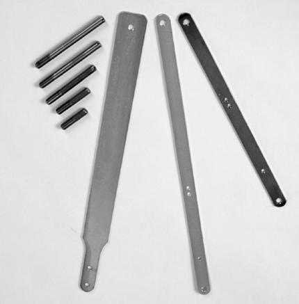 cm) long. The holes drilled in the hanger bar are marked for proper
